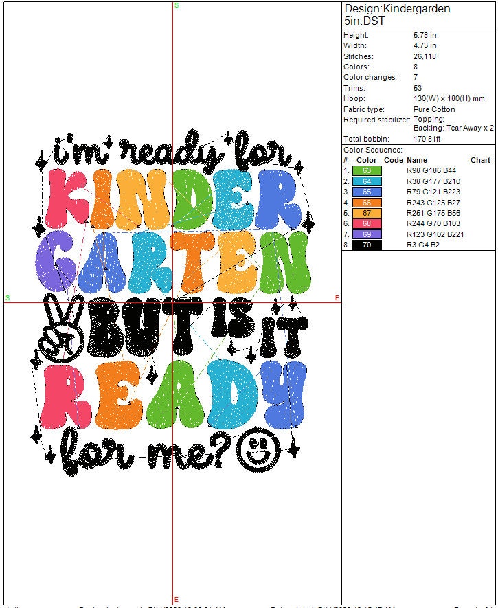 Back to School Kindergarten machine embroidery file design, 1st day of school Digital File Instant Download